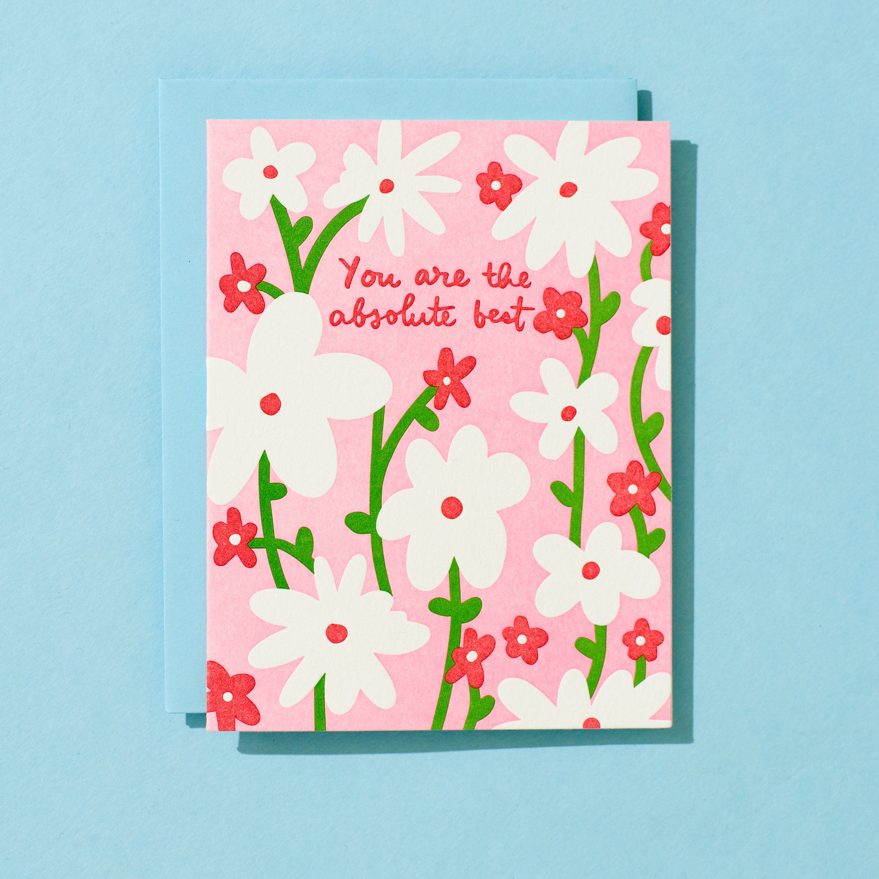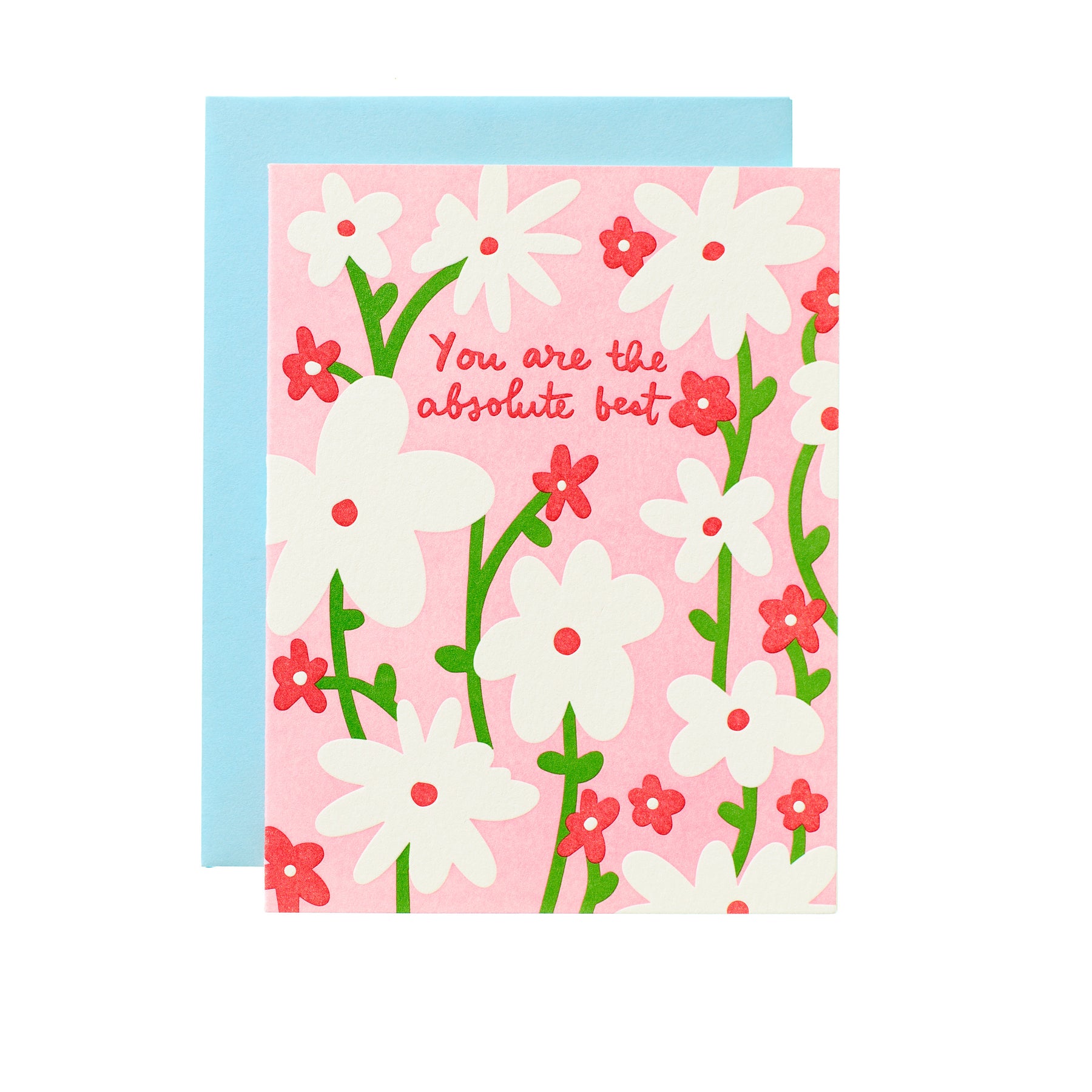 Letterpress printed by hand on 100% cotton paper (no trees!). Hand-mixed inks. Card measures 5.5 x 4.25 inches when folded, blank on the inside. Single card• Comes with an envelope packaged in a clear sleeve