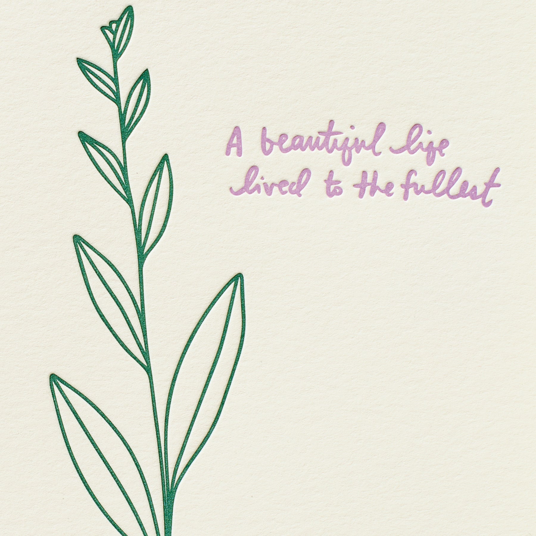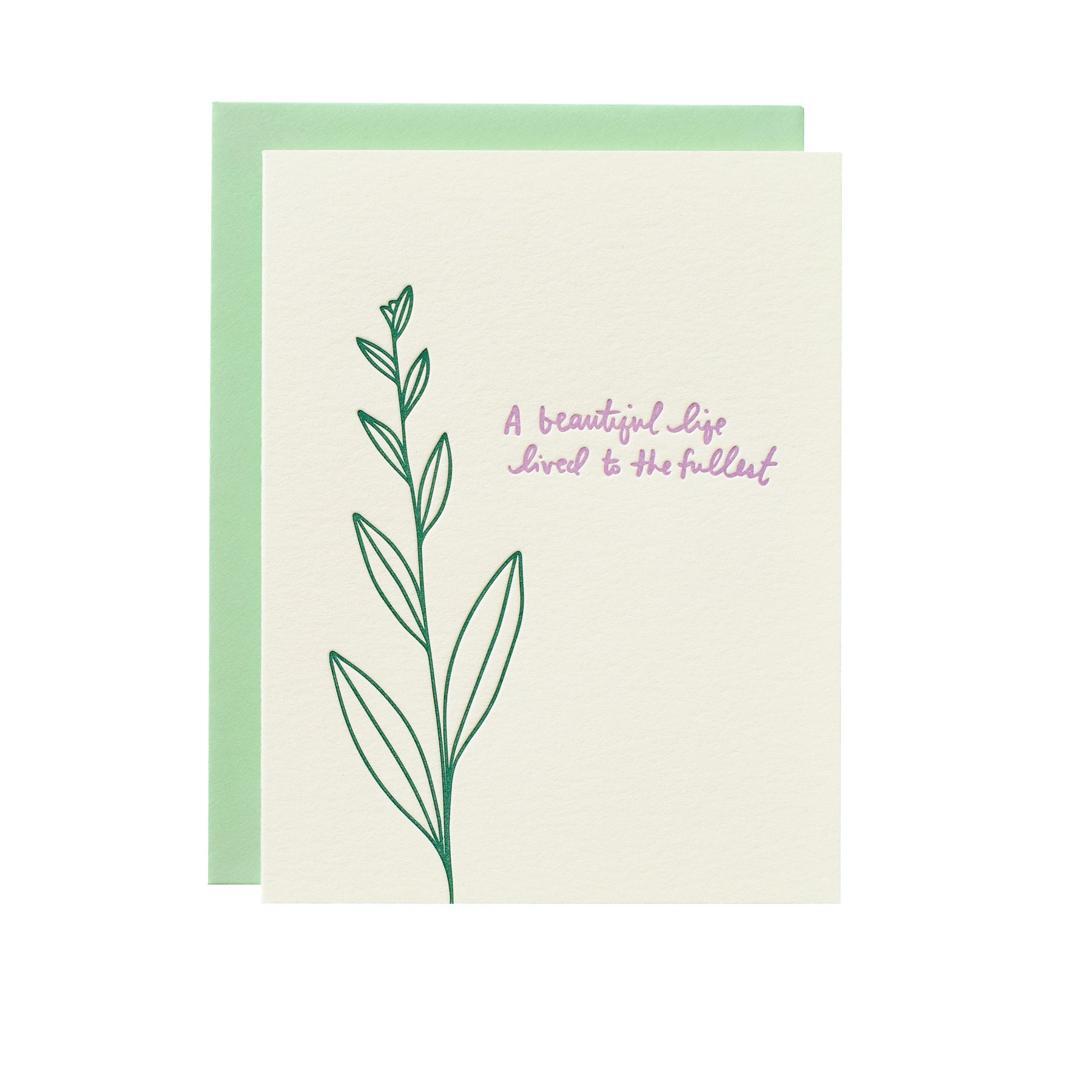Letterpress printed by hand on 100% cotton paper (no trees!). Hand-mixed inks. Card measures 5.5 x 4.25 inches when folded, blank on the inside.